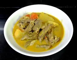 3. ใส่หัวกะทิลงในกระทะเคี่ยวให้แตกมัน ใส่พริกแกงกะหรี่ลงผัดจนสุกและมีกลิ่นหอม ใส่าหมูที่ทอดไวว้ลงคลุกเคล้าให้เข้ากัน เติมหางกะทิเคี่ยวไฟอ่อนจนขาหมูเริ่มนุ่ม ใส่เผือกที่ทอดไว้ และหอมหัวใหญ่ ปรุงรสด้วยน้ำปลาน้ำตาลปี๊บ เคี่วจนส่วนผสมยนุ่ม ตักใส่ภาชนะ เสิร์ฟพร้อมอาจาด